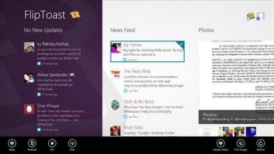 When the Consumer Preview for Windows 8 released earlier this year, the Twitter app available for users was a Microsoft creation. Today, a new app released by W3i Holdings is available called FlipToast that lets Windows 8 users update both Twitter and Facebook. A social graph is also included that is supposed to help users find topics of interest.