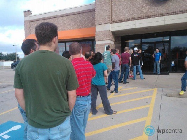 WPCentral has received some photos from some AT&T customers lining up at stores today. We’ve also been hearing mixed results from people who have gone into AT&T stores looking for the devices. It looks like your best bet is to call ahead and see if your local store has any of the three devices in stock. Good luck!