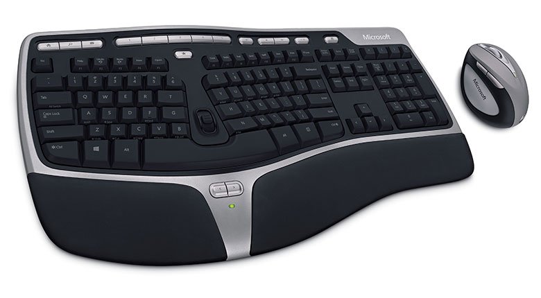 The keyboard keeps the ergonomic dome shape from the last model, but comes in much, much thinner. There is a new row of Windows 8 keys that can be switched to function keys with a toggle. The number bad is completely detached, and can be moved to wherever feels comfortable. There is also a comfortable wrist rest. The mouse is rounded to reduce wrist pronation, and it has a Windows button on top.