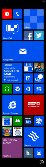 The display on the 8X is one of the best I’ve seen. It’s 4.3-inches with 1280×720 resolution. Windows Phone 8 looks absolutely amazing in HD. The colors on the lockscreen really pop out and look great. The screen is Super LCD 2, so while the blacks aren’t quite as black as an AMOLED screen it’s pretty darn close. The auto-brightness setting could use a little tweaking by HTC. The screen would be very bright, and next thing I know it would be very dark. The light around me hadn’t changed.