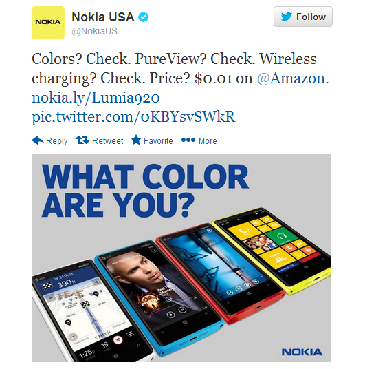 To finish things off Nokia sent out the tweet above. They have colors, they have a great camera, and it’s only a penny on Amazon…right now! Why wait to buy one of the new iPhones? We really enjoyed Nokia’s playful jabs at Apple yesterday. It’s always fun to pick on the competition a little bit, and we only expect the same in return. What did you think?