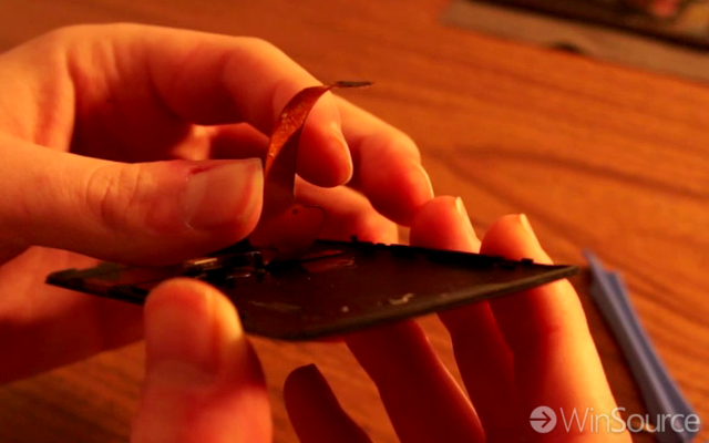 Next we will use the same technique to get under the corners and remove it. Be extra careful with this piece because it is responsible for the wireless charging. Keep it in one piece and set aside once removed.
