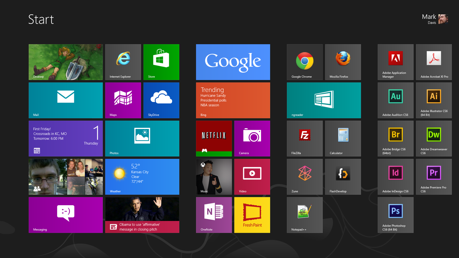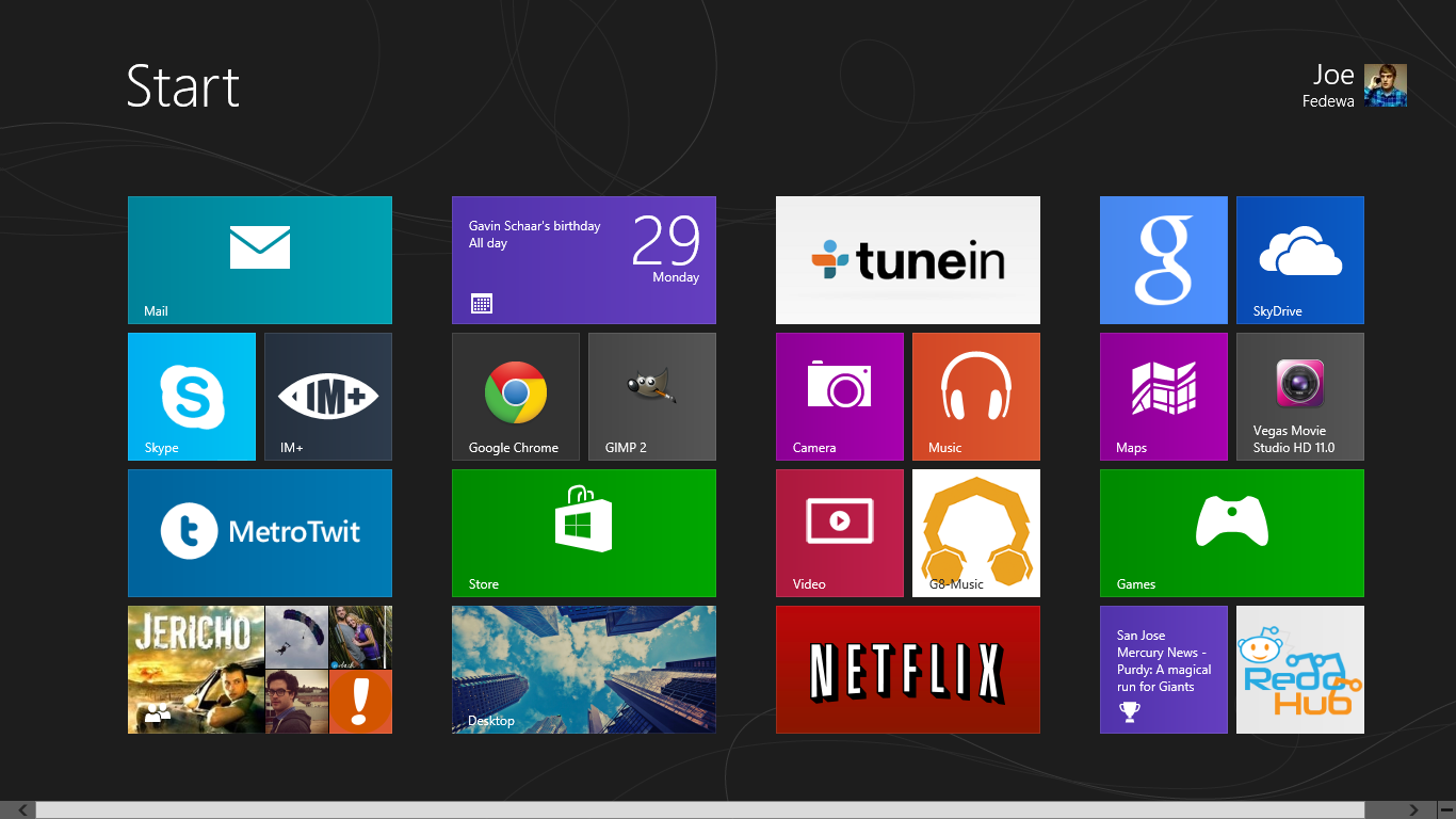 Just wanted to get the inagural "share your Start screen" thread for Windows 8 going. I'm sure the Surface forum will have one too, but this can be for everyone else. Here's mine!
