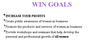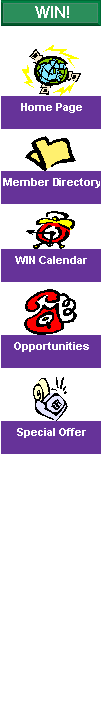 WIN is a complete and exclusive network resource and marketing service. WIN members are women who are self-employed, run home-based businesses, or are in commission sales: They secure an exclusive area of specialty for which they will receive referrals. Benefits of WIN include: